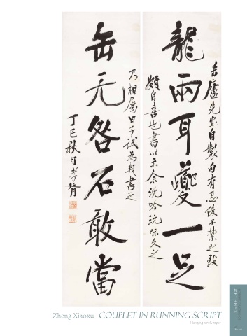 画 书 美 有 : 国 中 Zheng Xiaoxu COUPLET IN RUNNING SCRIPT SUPERFLUOUS THINGS Hanging scroll,paper Lot. 559 / 560