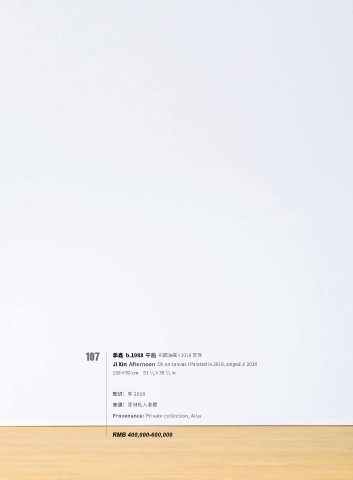 107 季鑫 b.1988 午后 布面油画 I 2018 年作 Ji Xin Afternoon Oil on canvas I Painted in 2018, singed Ji 2018 3 1 130×90 cm 51 / 8 ×35 / 8 in 款识:季 2018 来源:亚洲私人收藏 Provenance: Private collection, Aisa RMB 400,000-600,000
