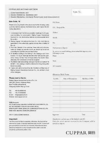 A/C holder’s name: BEIJING CUPPAR INT’L AUCTION CO.LTD.