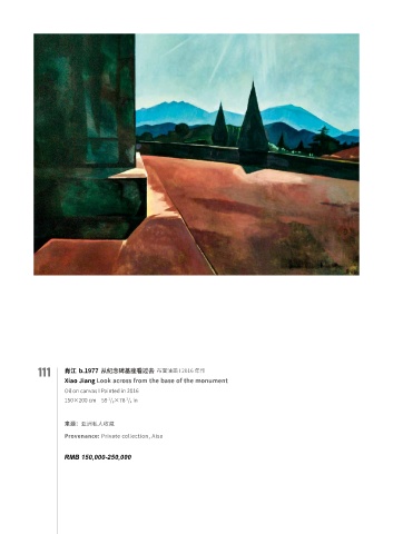 111 肖江 b.1977 从纪念碑基座看过去 布面油画 I 2016 年作 Xiao Jiang Look across from the base of the monument Oil on canvas I Painted in 2016 1 3 150×200 cm 59 / 8 ×78 / 4 in 来源:亚洲私人收藏 Provenance: Private collection, Aisa RMB 150,000-250,000