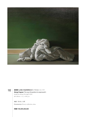 112 张英楠 b.1981 形态的表现方式 1 布面油画 I 2011 年作 Zhang Yingnan The way the pattern is expressed 1 Acrylic on canvas I Painted in 2011 1 3 80×100 cm 31 / 2 ×39 / 8 in 来源:亚洲私人收藏 Provenance: Private collection, Aisa RMB 150,000-250,000
