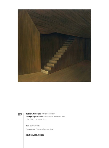 113 张英楠 b.1981 秘密 布面油画 I 2012 年作 Zhang Yingnan Secret Oil on canvas I Painted in 2012 1 1 130×130 cm 51 / 8 ×51 / 8 in 来源:亚洲私人收藏 Provenance: Private collection, Aisa RMB 150,000-250,000