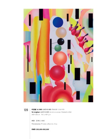 120 叶凌瀚 b.1985 LUCY-S-005 布面丙烯 I 2018 年作 Ye Linghan LUCY-S-005 Acrylic on canvas I Painted in 2018 3 1 200×150 cm 78 / 4 ×59 / 8 in 来源:亚洲私人收藏 Provenance: Private collection, Aisa RMB 350,000-500,000