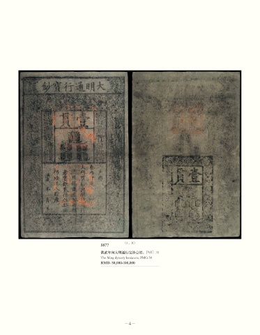 5877 (正、反) 洪武年间大明通行宝钞壹贯,PMG 30 The Ming dynasty banknote, PMG 30 RMB: 50,000-100,000 -4-