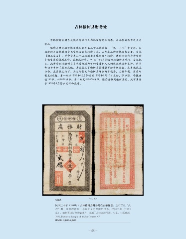分会。在县长主持下,决定印制发行榆树县财务处吉钱条,石版印制,前后印
