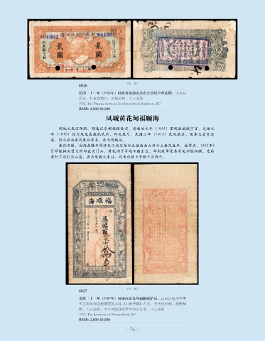 致,七五成新,奉天凤城钱庄票为目前首见,八五成新