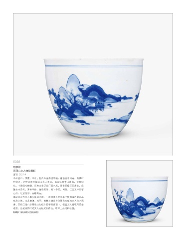 代特点,外壁以青花描绘山水人物纹,画面远景青山迭出,云墨幻