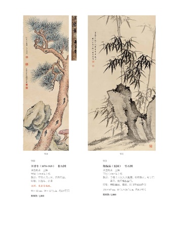 汪洛年(1870-1925) 松石图 梅振瀛(民国) 竹石图