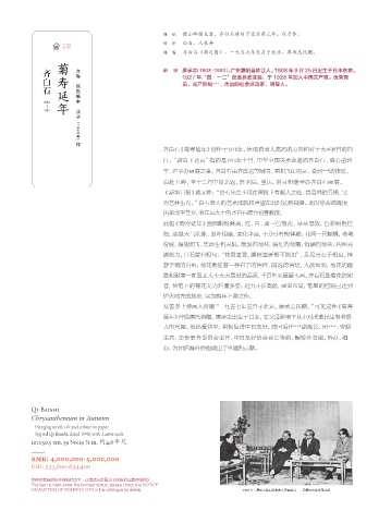 从签条上持画人所题 “一九五七年五月于北京。 廖承志氏赠。 ” 可见这件 《菊寿