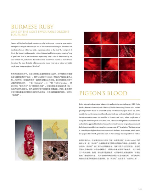 grading standard based on color and quality for the use of ‘pigeon blood red’. To be