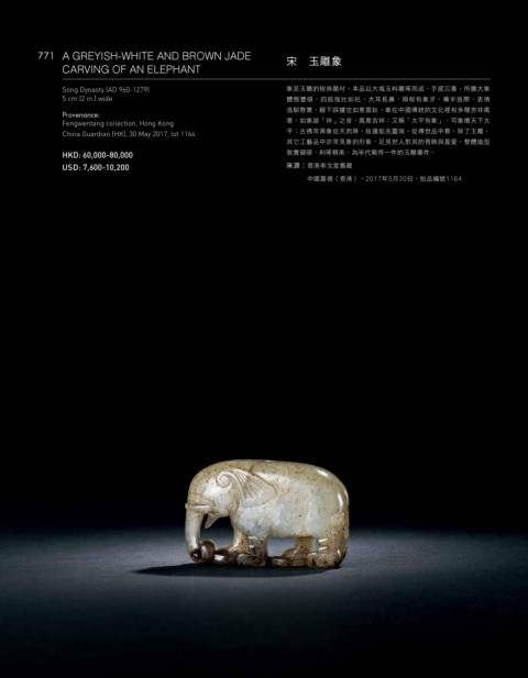771 A GREYISH-WHITE AND BROWN JADE 宋 玉雕象