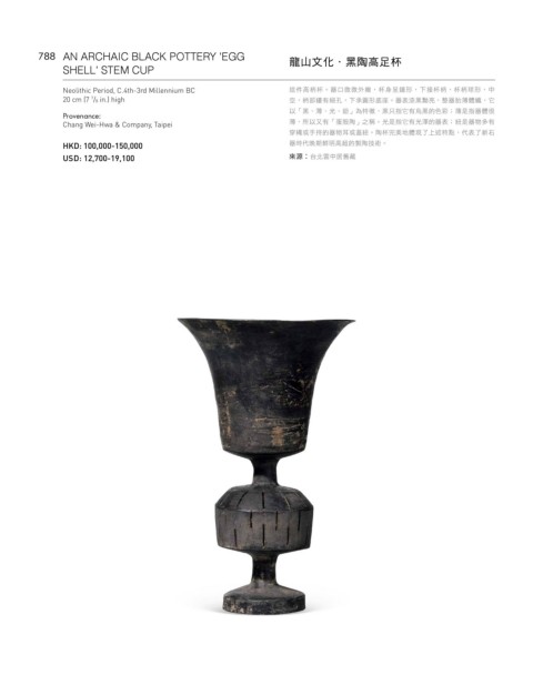 788 AN ARCHAIC BLACK POTTERY 'EGG 龍山文化·黑陶高足杯