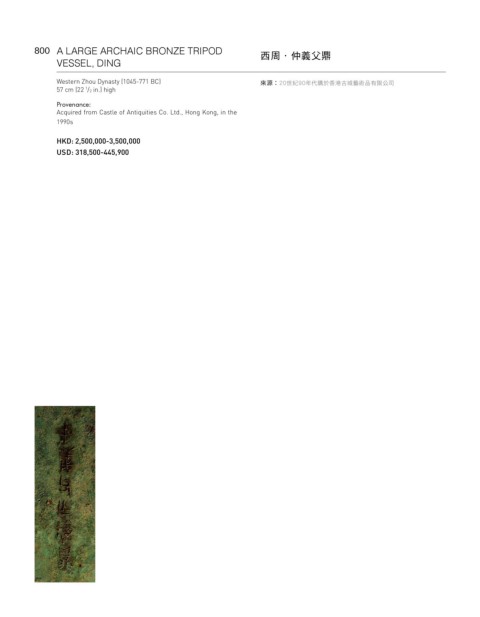 800 A LARGE ARCHAIC BRONZE TRIPOD 西周·仲義父鼎