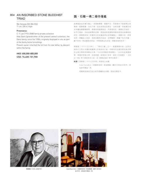C. Y. Lee (1915-2008) family private collection 右手已殘缺,衣紋曲線簡約流暢,將袈裟的柔順既準確地表現出絲織物的
