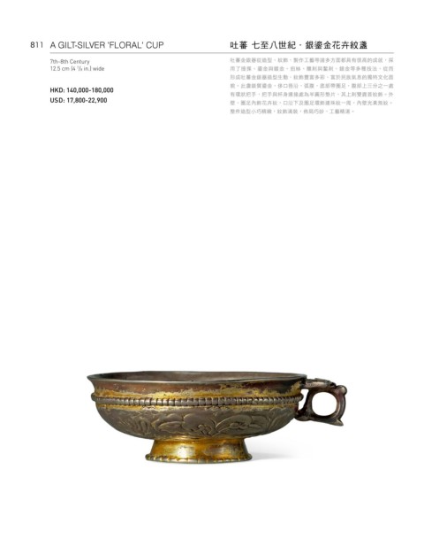 811 A GILT-SILVER 'FLORAL' CUP 吐蕃 七至八世紀·銀鎏金花卉紋盞