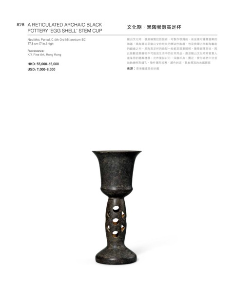 828 A RETICULATED ARCHAIC BLACK 文化期·黑陶蛋殼高足杯