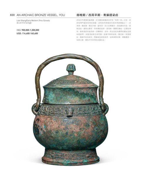 34 cm (13 /8) high 即指專門盛放秬鬯的酒器,是商周時期極具代表的青銅禮器之一。卣