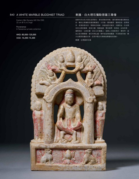 840 A WHITE MARBLE BUDDHIST TRIAD 東魏·白大理石彌勒菩薩三尊像