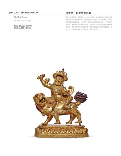 849 A GILT-BRONZE DAMCAN 清中期·銅鎏金察哈爾