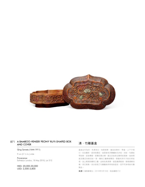 871 A BAMBOO-VENEER 'PEONY' RUYI-SHAPED BOX