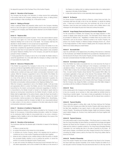 are no other defects. question is declared void by the Auctioneer on the spot. Article 18 Discretion of the Auctioneer than the Hong Kong dollar, the same shall be converted at the exchange rate agreed