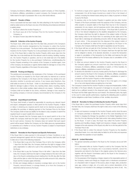 Company, its divisions, affi liates, subsidiaries or parent company, or China Guardian, 4. To institute a legal action against the Buyer, demanding that he or she