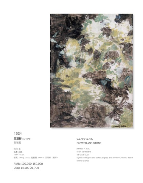 签名:Wang 2020;花石图 2020-15 王亚彬(画背) signed in English and dated; signed and titled in Chinese, dated