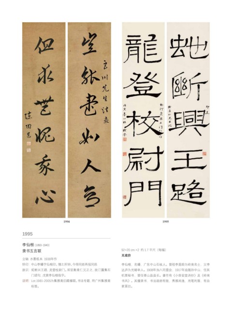 说明:Lot.1981-2005为集雅斋旧藏楹联、书法专题,附广州集雅斋 书风》。其擅隶书,书法疏朗有致,秀雅闲逸,用笔利落,有自