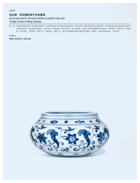 说 明:永乐青花瓷器代表了明代瓷器的巅峰,在中国陶瓷史上具有极其重要的地位。虽然永乐一朝时间远远长於宣德时期,但永乐青花文物存世量却远远少於