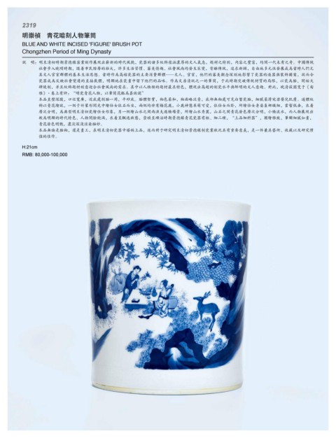 BLUE AND WHITE INCISED 'FIGURE' BRUSH POT