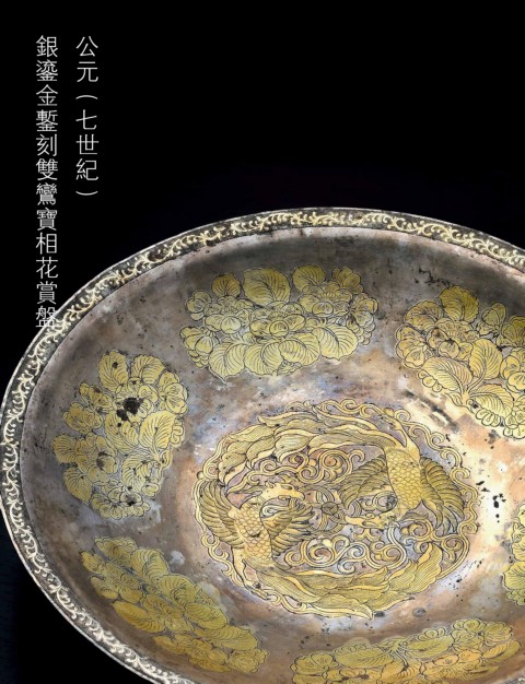 银鎏金錾刻双鸾宝相花赏盘 公元︵七世纪︶