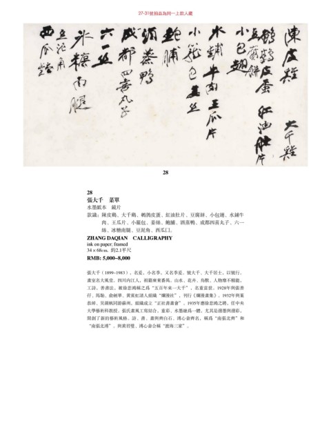 工诗,善书法,被徐悲鸿称之为“五百年来一大千”,名重当世。1928年与张善