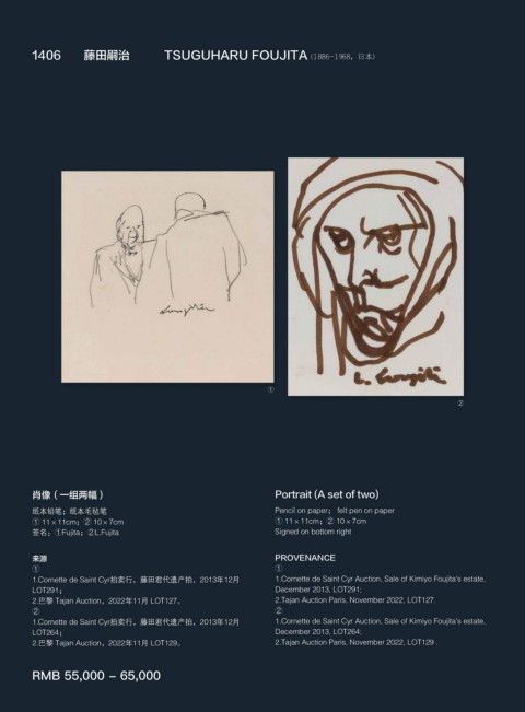 1.Cornette de Saint Cyr拍卖行,藤田君代遗产拍,2013年12月 1.Cornette de Saint Cyr Auction, Sale of Kimiyo Foujita's estate,