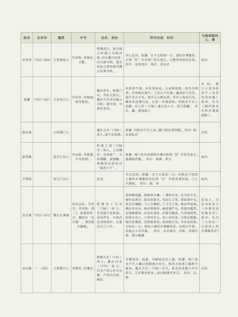 姓名 生卒年 籍贯 字号 功名、身份 所作内容、时间