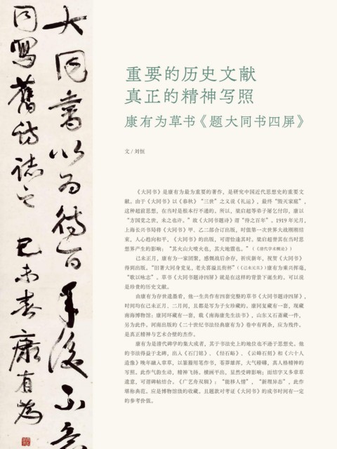 “歌以咏志”。草书《大同书题诗四屏》就是在这样的背景下诞生的。可以说